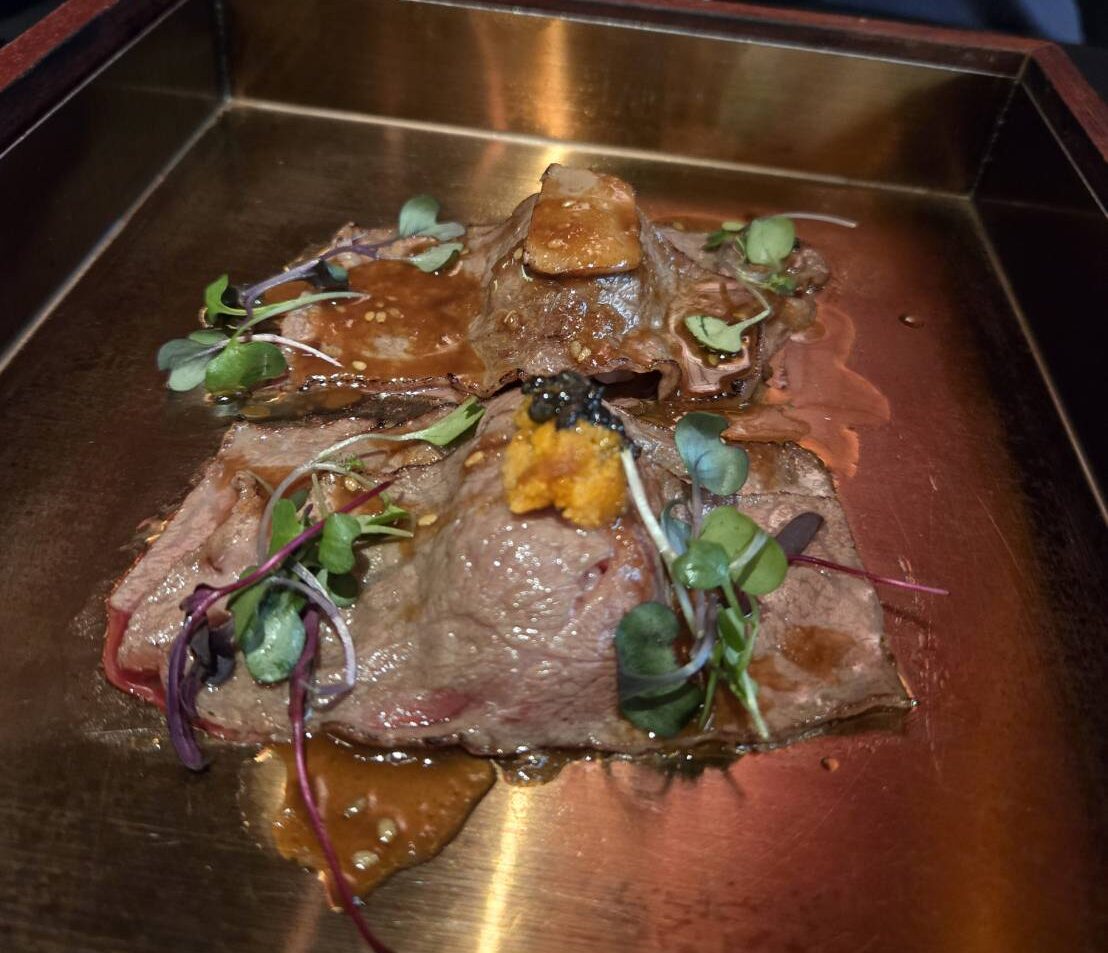 スペシャルメニューから頼んだ、ウニとキャビアが乗ってる和牛の握りもすぐにきて。