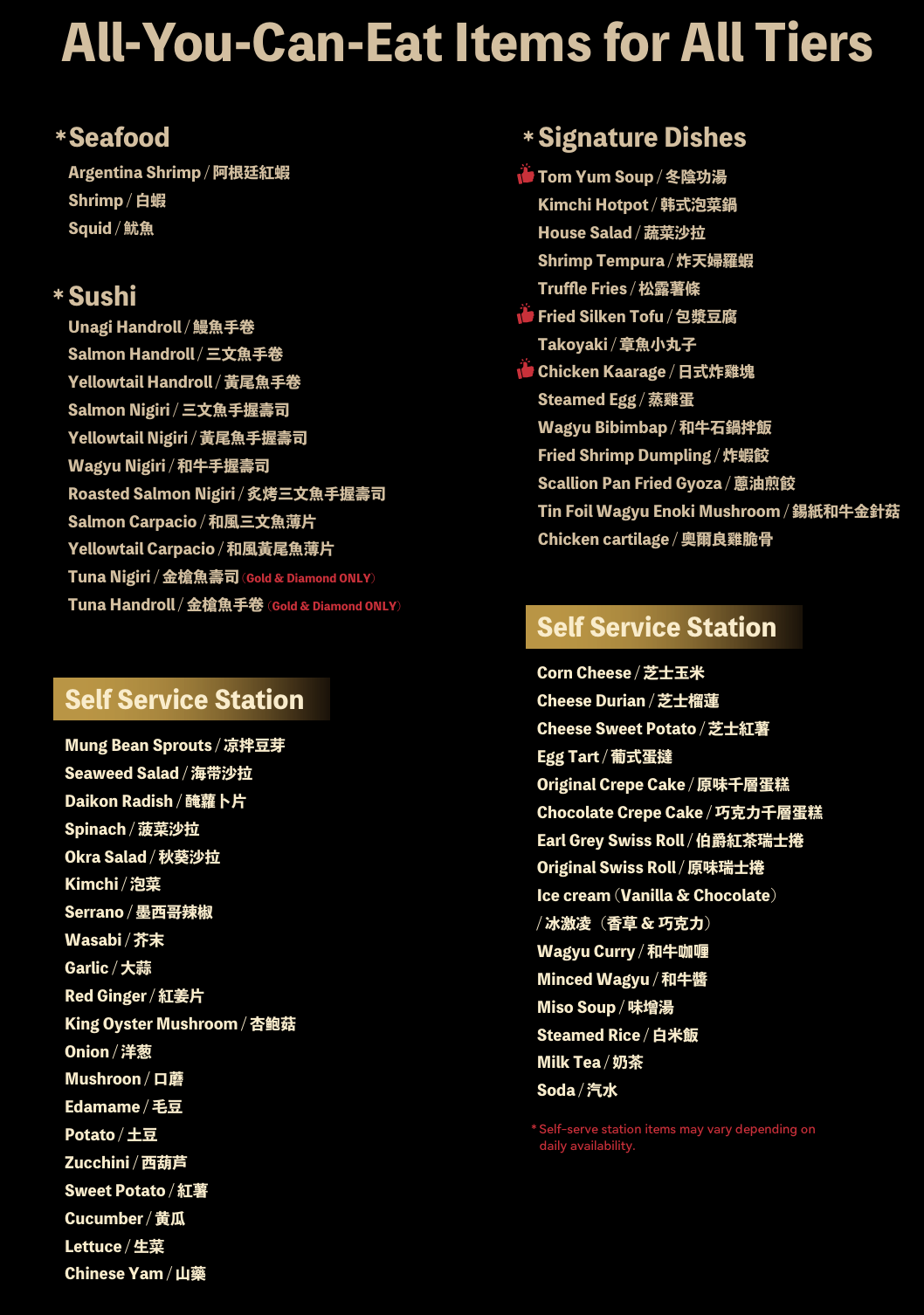 上記メニュー以外に、下記メニューからも選び放題食べ放題!