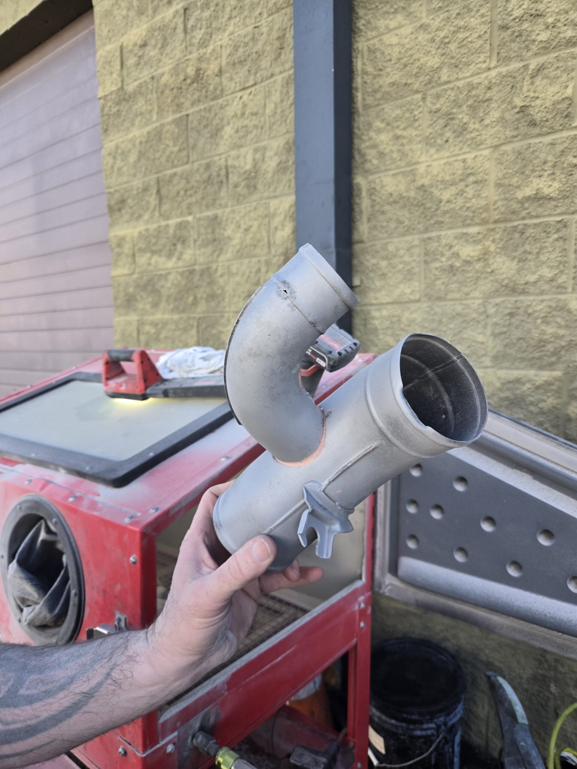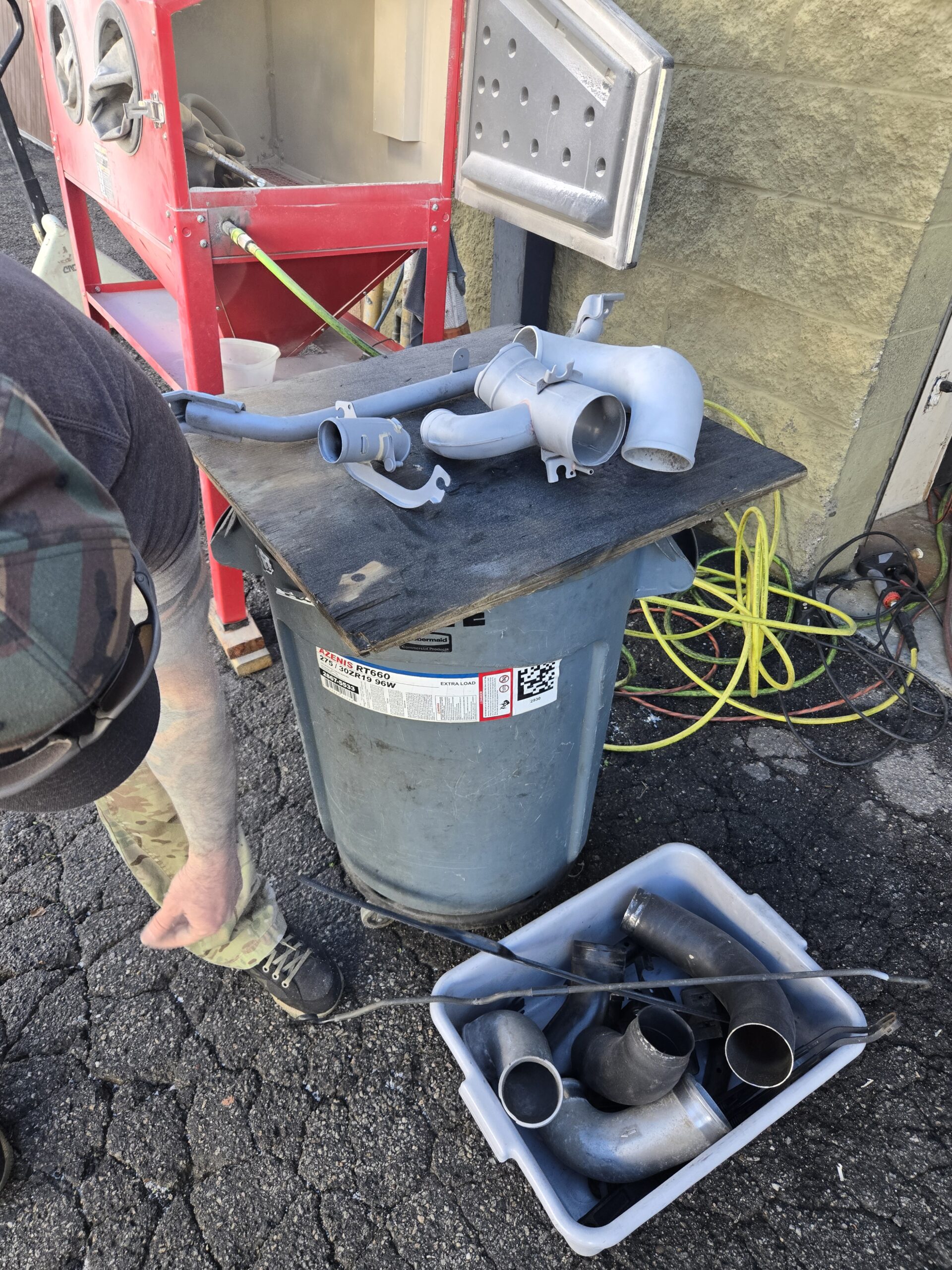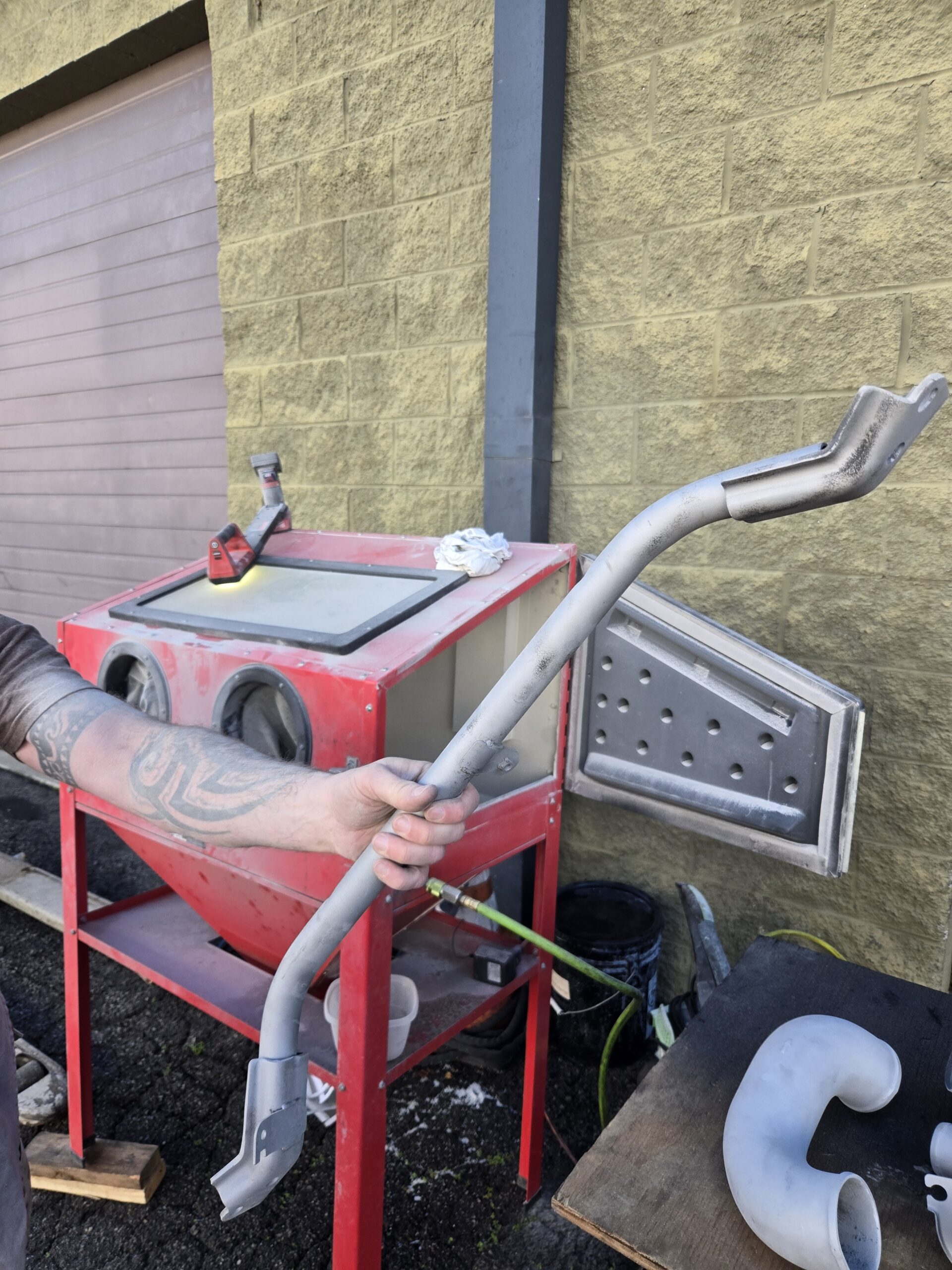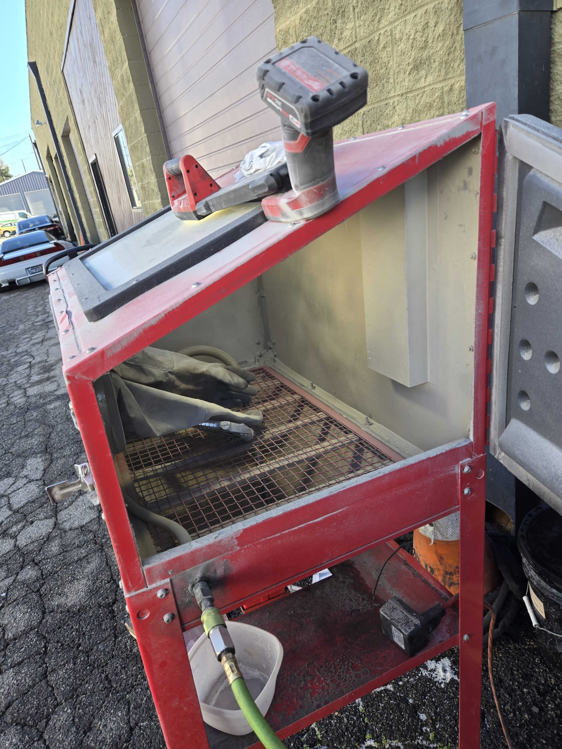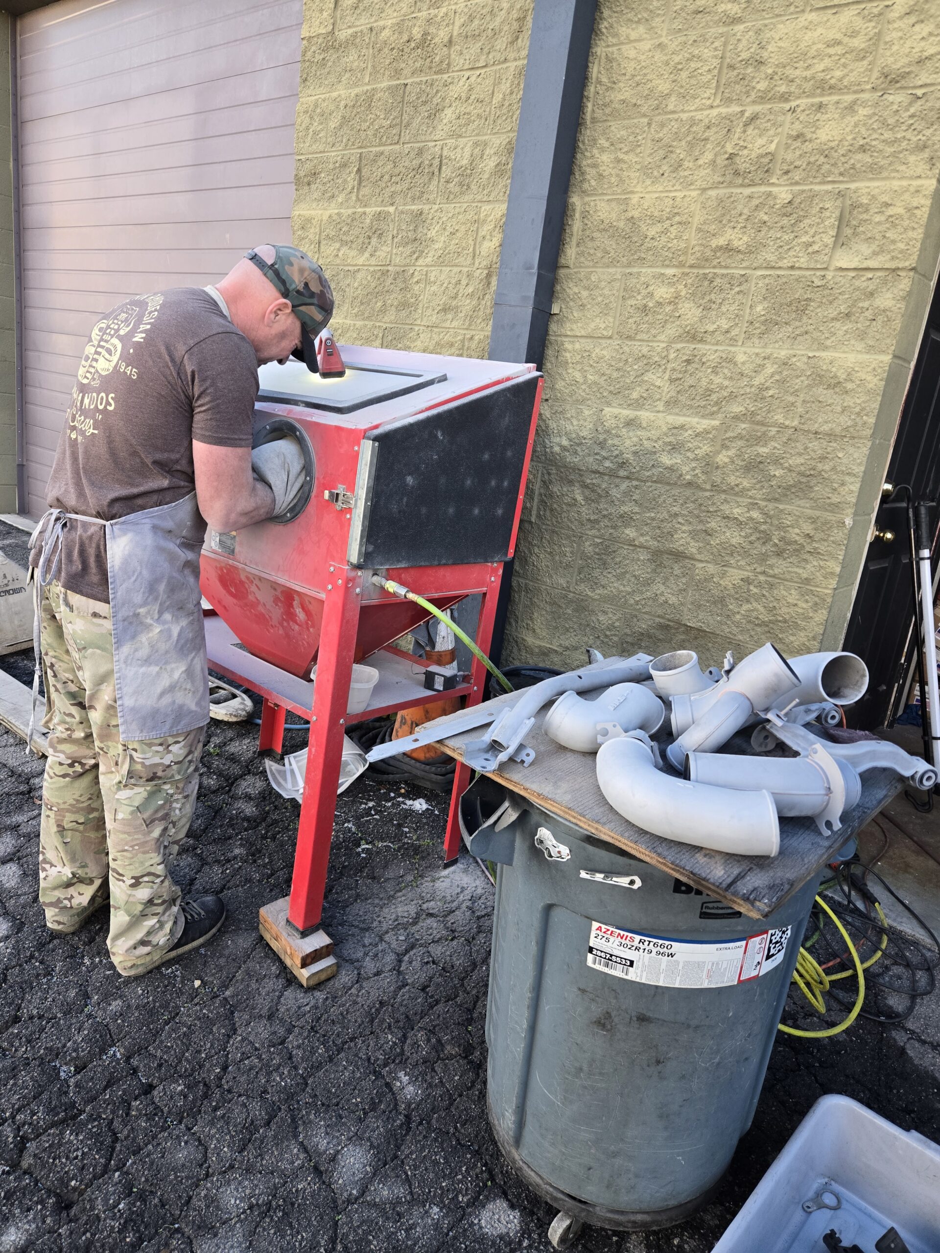 このサンドブラストマシンで研磨剤を吹きかけ、錆を落としていきます。