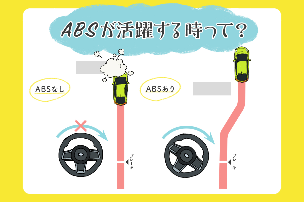 (本来急ブレーキすると、タイヤがロックされハンドルもコントロールできなくなるそうです。。参照:中古車のガリバー)