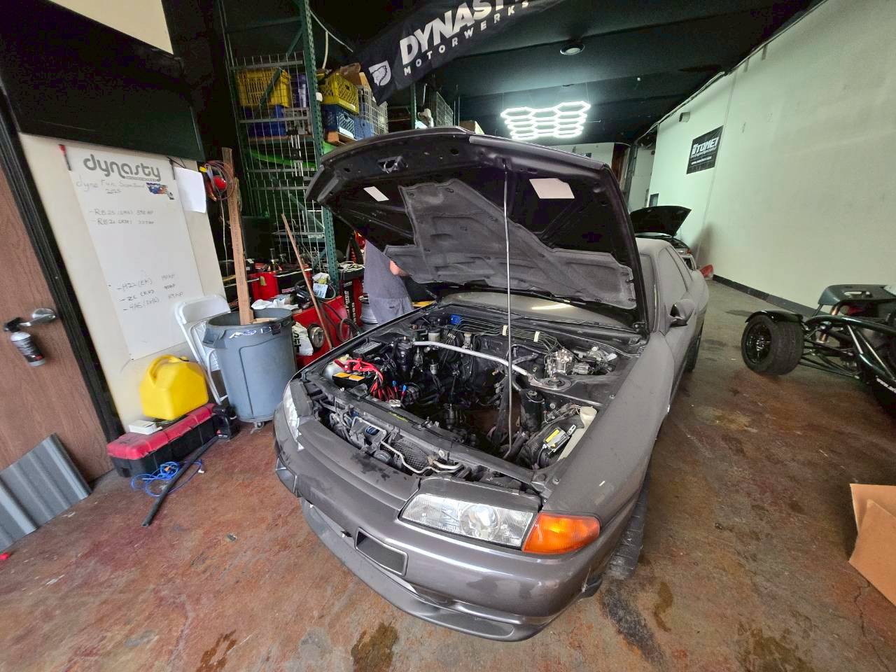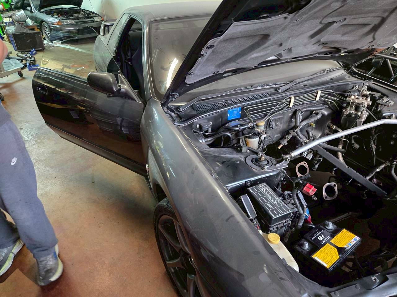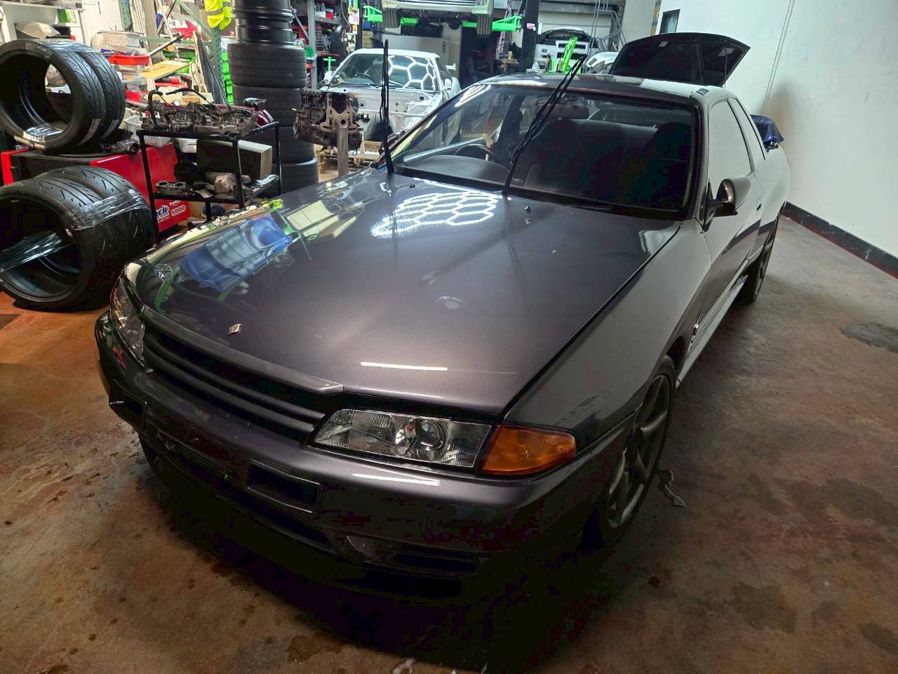 というのも、埃まみれでずっと置かれてたこの車を洗いたくって。こちらGT-R (R32) 。