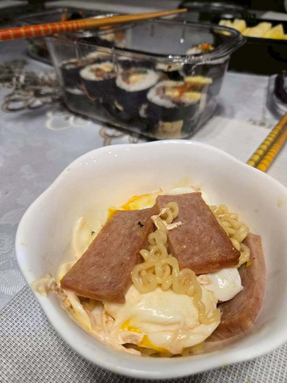 アンド、ハニお手製スパム入り辛ラーメン。やっぱり私にはまだまだ辛い。