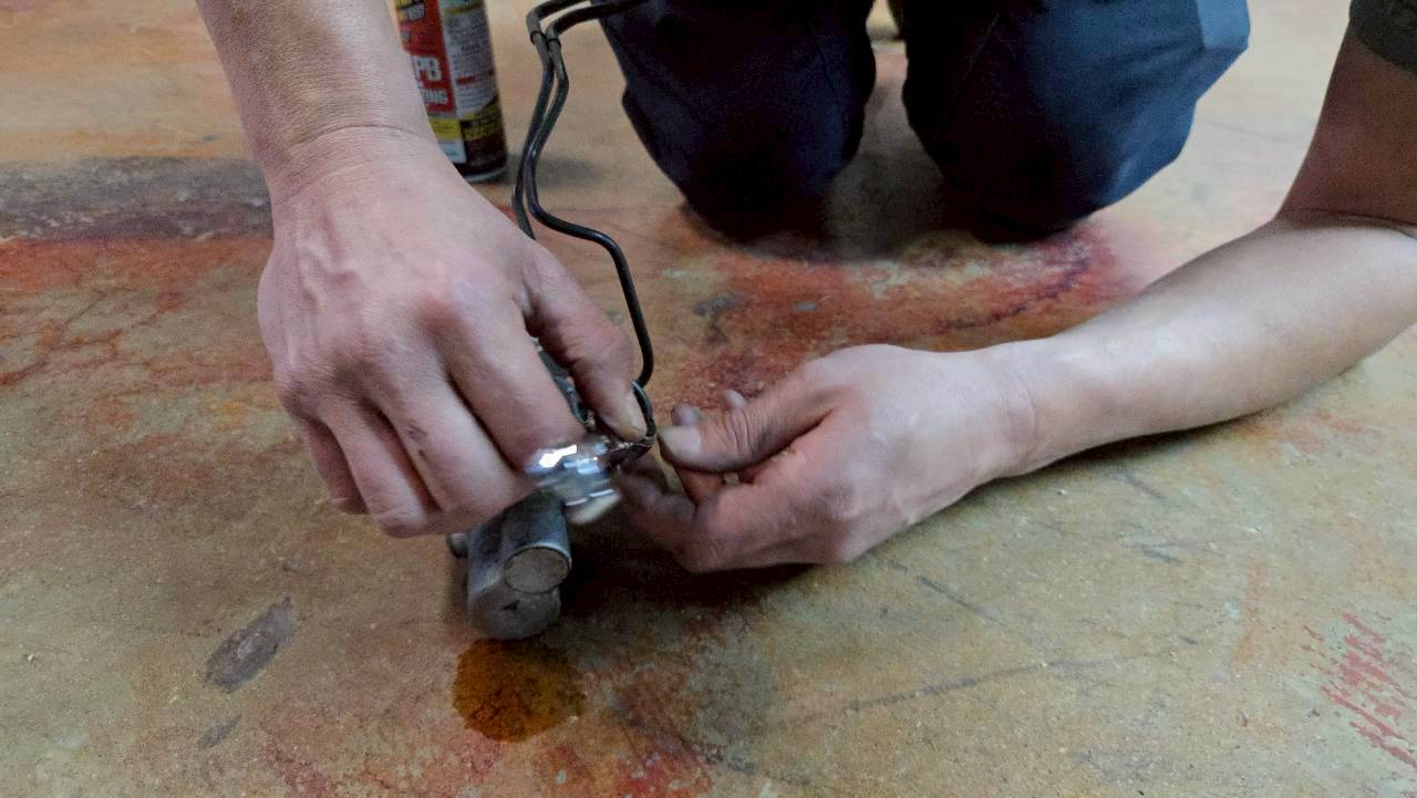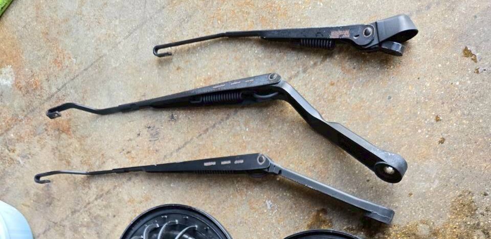 ワイパーアームもサンドスポンジで擦り、錆を落として
