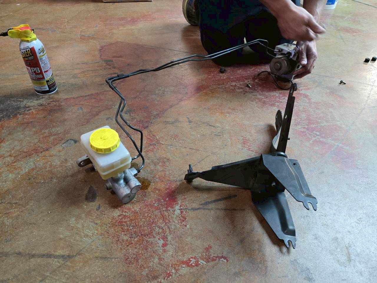 ブレーキマスターシリンダー:ブレーキペダルからの力を油圧に変換して、各車輪のブレーキに伝達する役割を果たします。