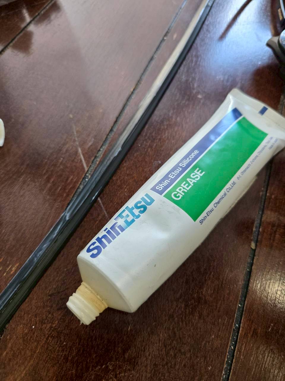 ワイパーラバーには、この「ShinEtsu」っていうクリームを塗っていきます。