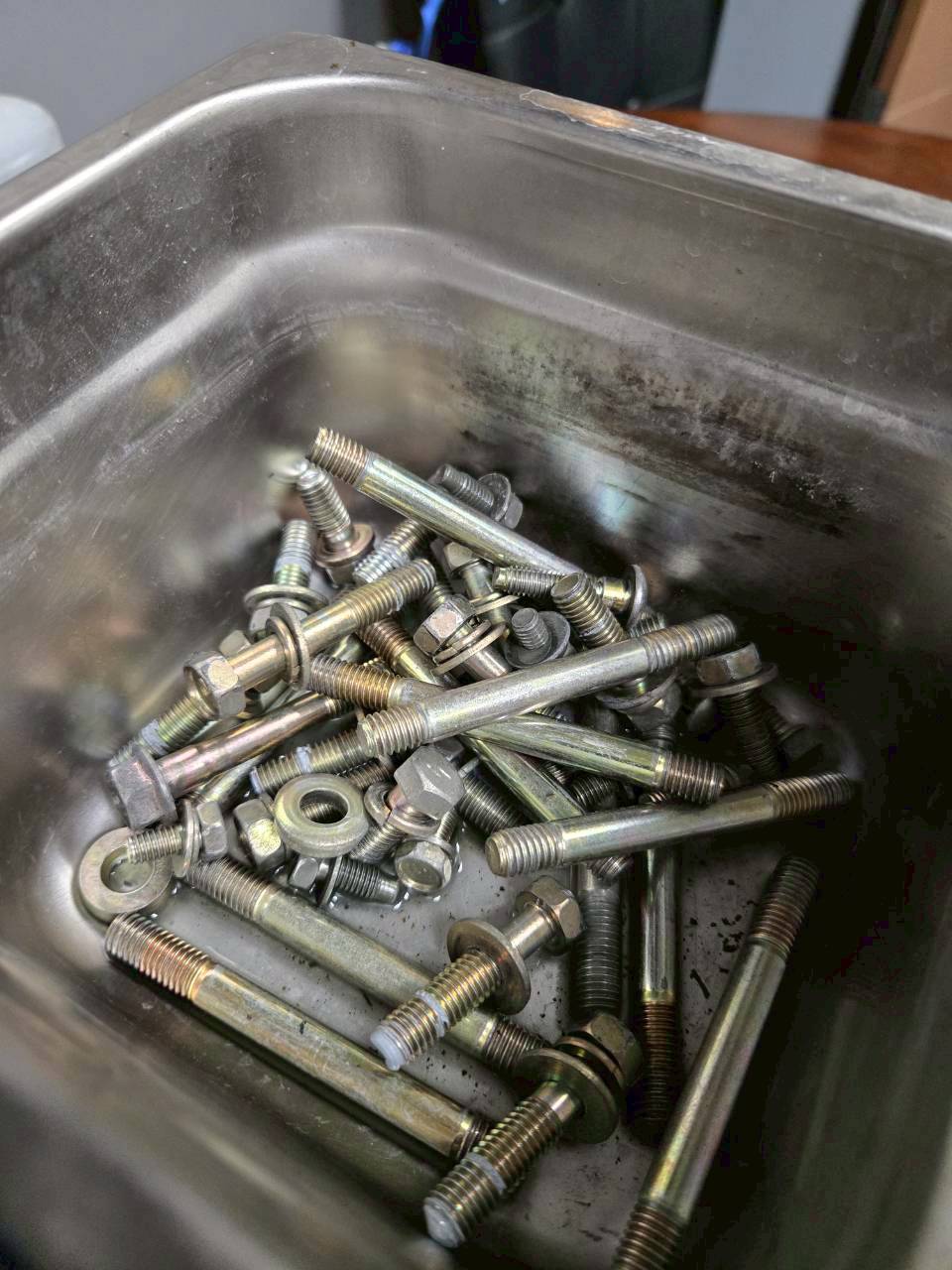 先ほど外したボルトたちを超音波洗浄機に入れてたので、その後拭き上げます。