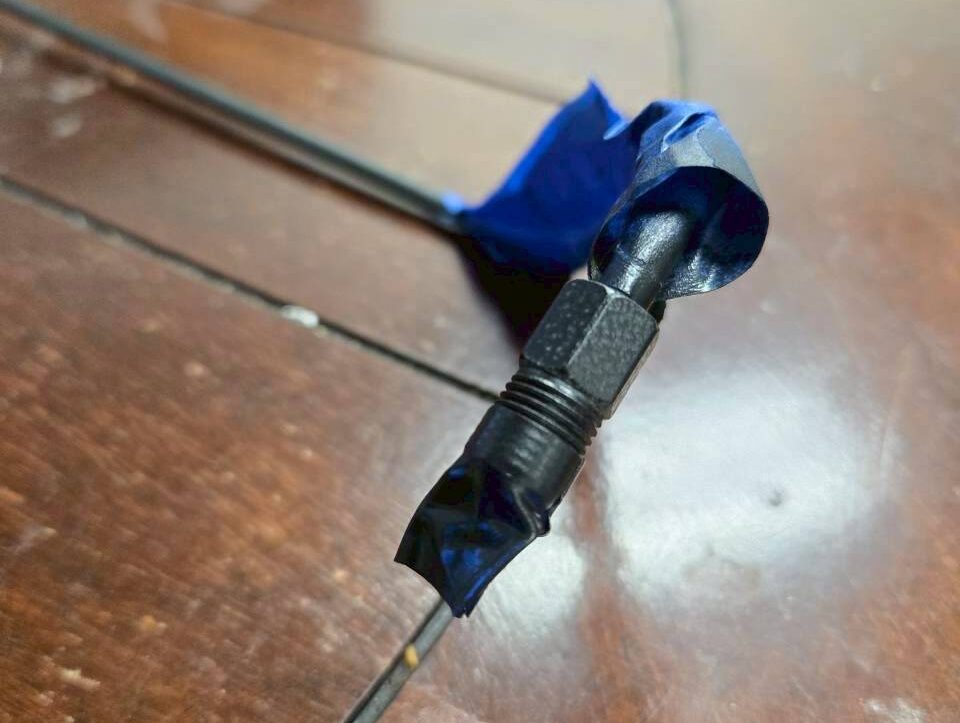 昨日錆び取りして黒スプレーしたこちらの棒?を取り付け。