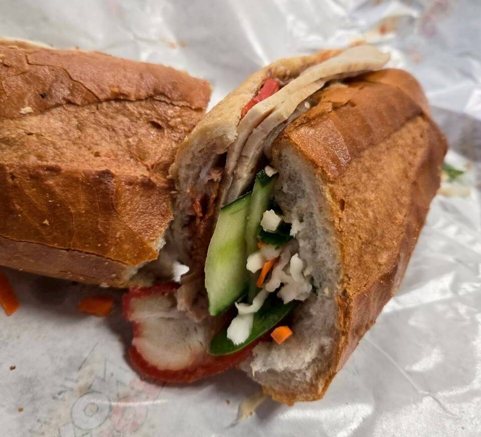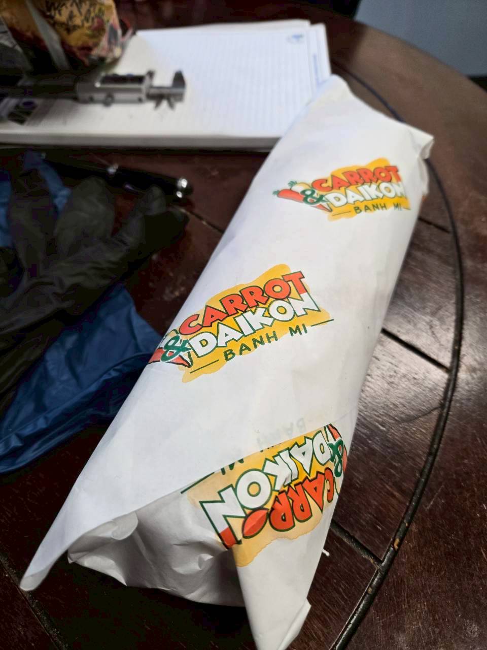 格闘してたらジェイソンが遊びにきて、お客さんからの差し入れ「バインミー」を分けてくれました!
