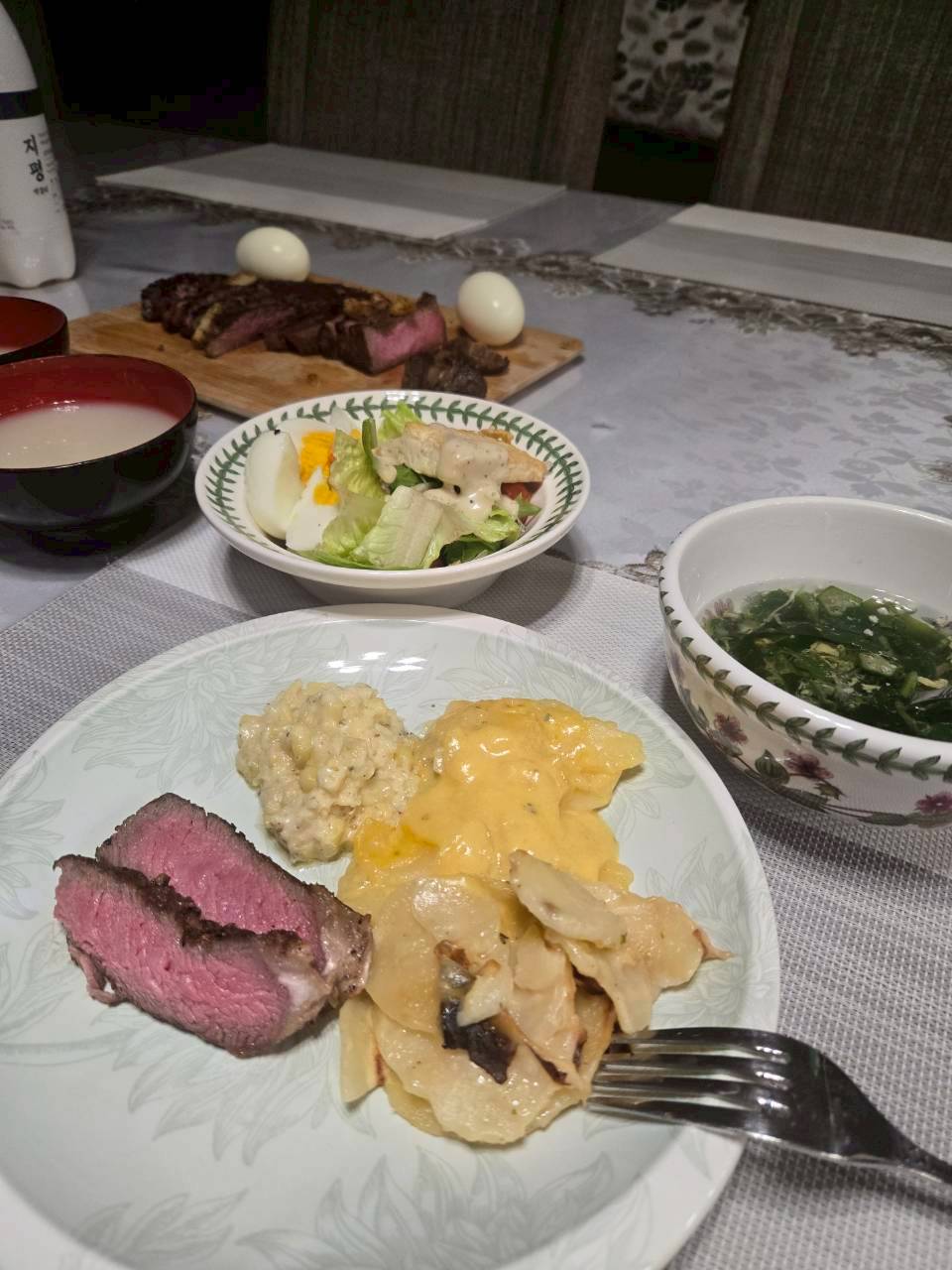 帰宅し、夜ご飯は昨日の残りのステーキ🥩!
