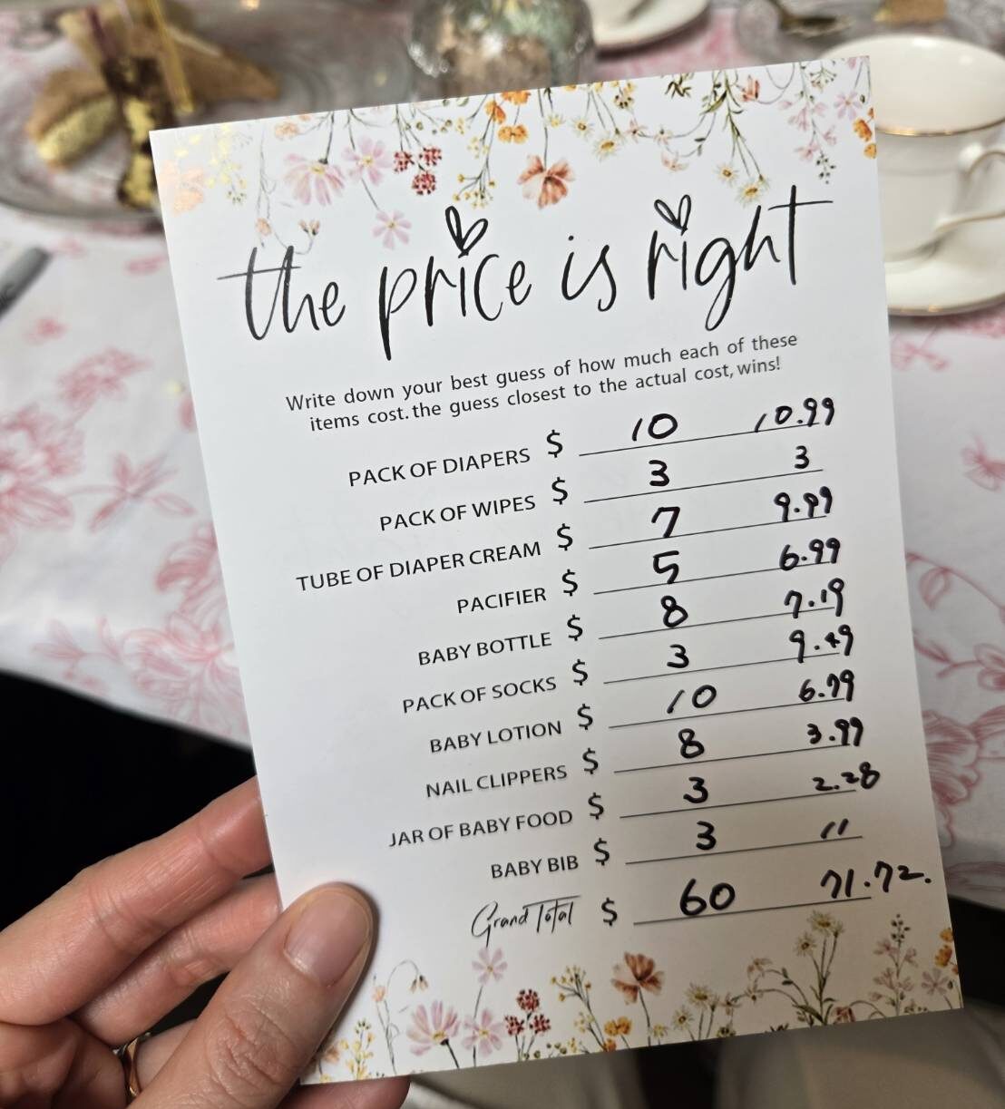 赤ちゃんグッズの値段当てゲーム。予想金額より10ドルも上回り、全然ダメでした。。😂