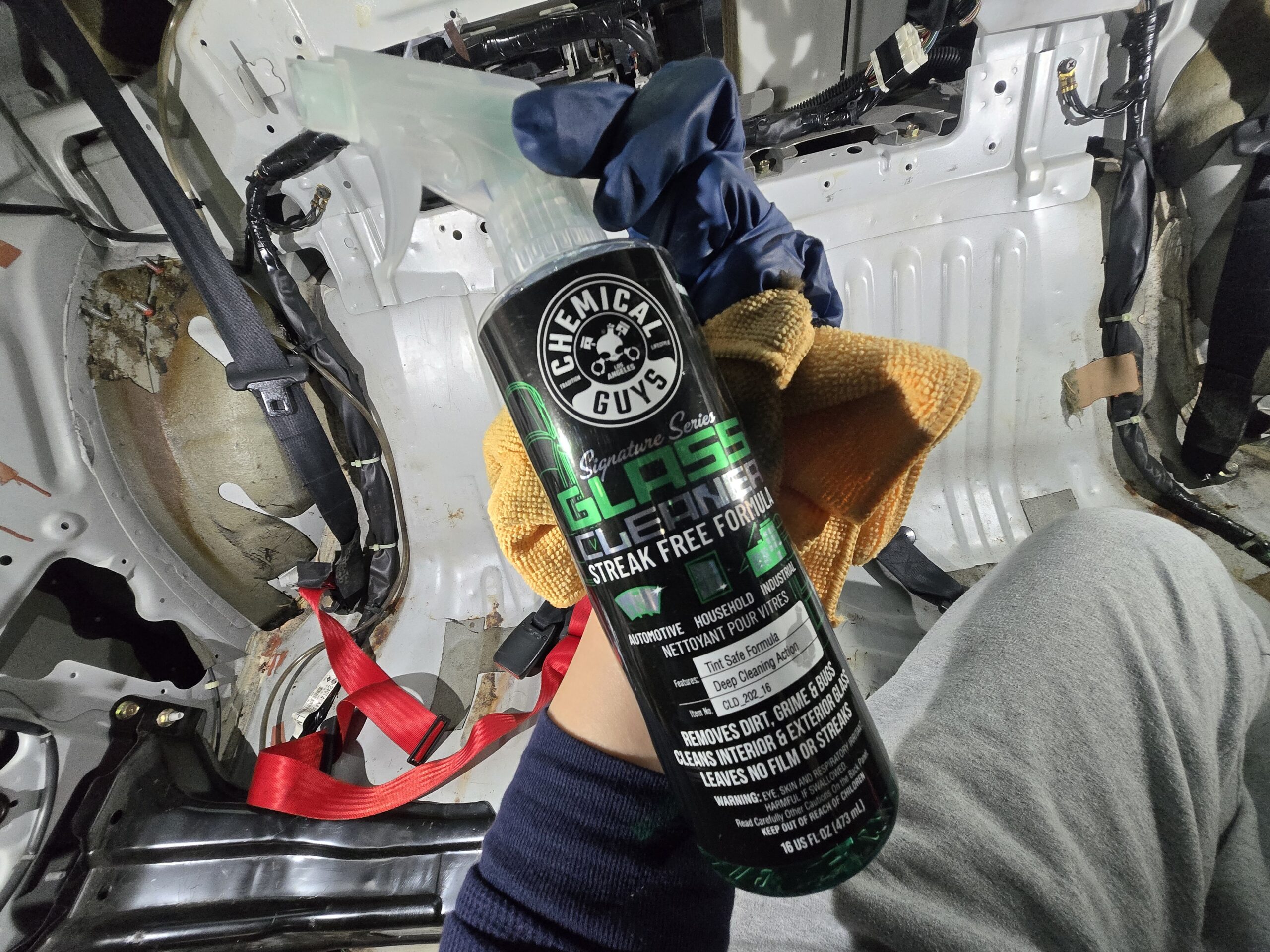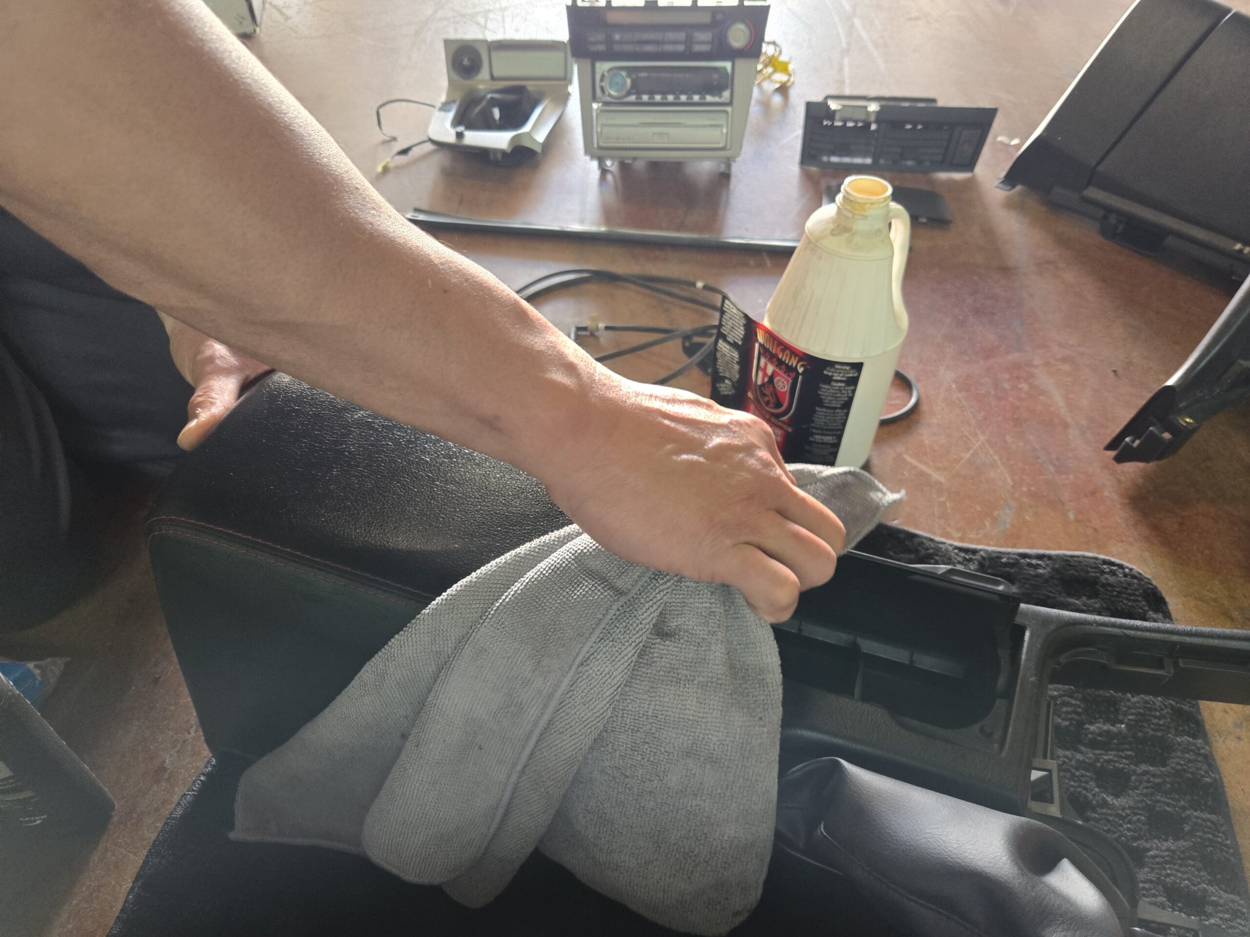 車内専用クリーナーで、拭き上げていきます。
