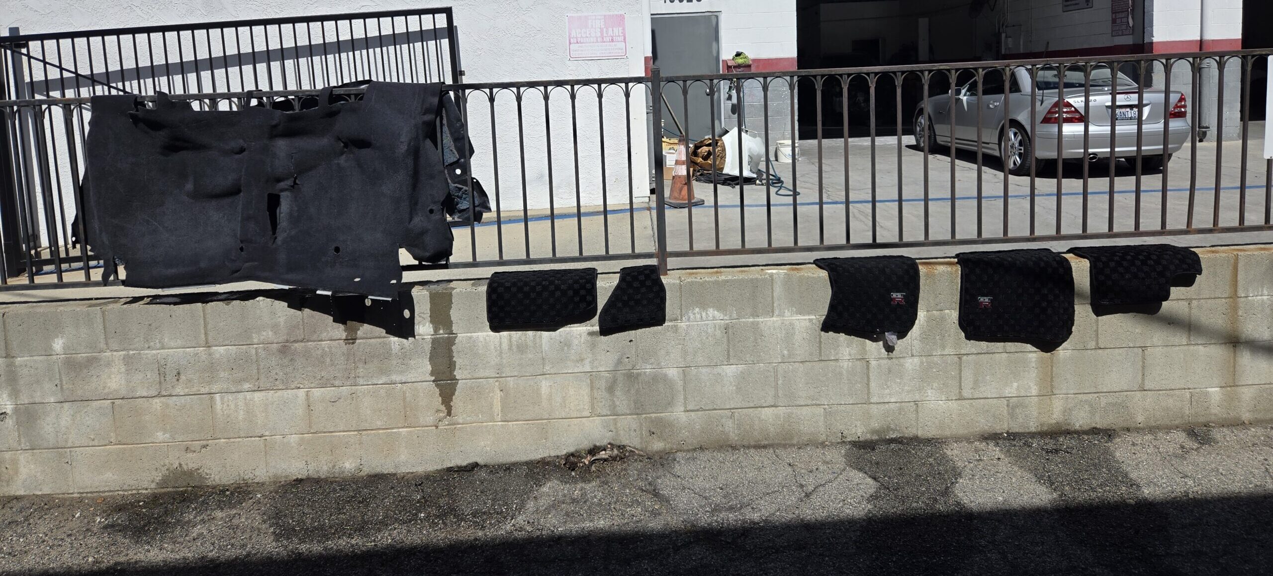 フロアマットとカーペットを水洗いしていきます。